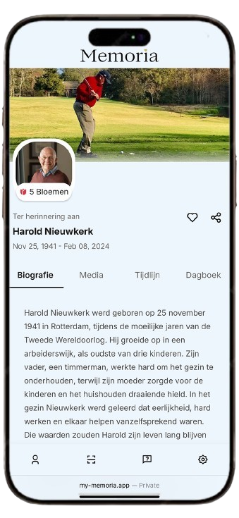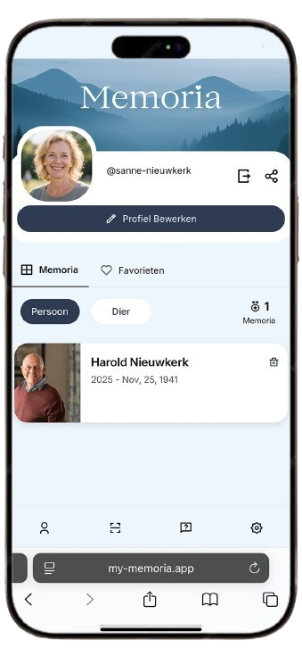 Een plek voor foto’s, video’s, stemmen en verhalen. Om samen te bewaren, te voelen en te delen met iedereen die mist.